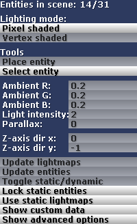 - Update lightmaps: recalculates all lightmaps for static entities.