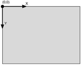 Scene origin is at the upper left corner of the screen, the X-axis points to the right and the Y-axis points downwards. There is also a Z-axis that points upwards by default, it produces an impression that the entity is floating because of viewer's perspective.