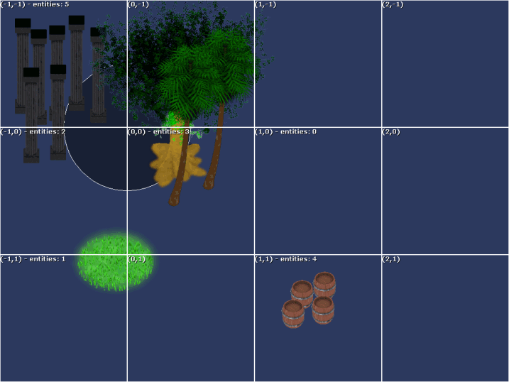 Scenes in Ethanon Engine are partitioned into several rectangular buckets, which allows many software optimizations to take place.